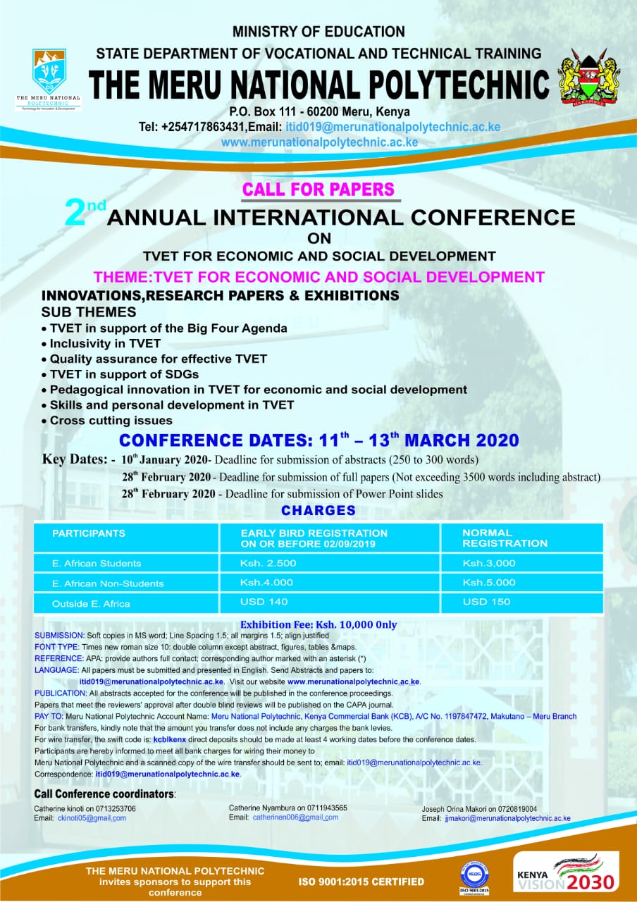 2ND ANNUAL INTERNATIONAL CONFERENCE ON TVET FOR ECONOMIC AND SOCIAL DEVELOPMENT...( READ MORE HERE..)