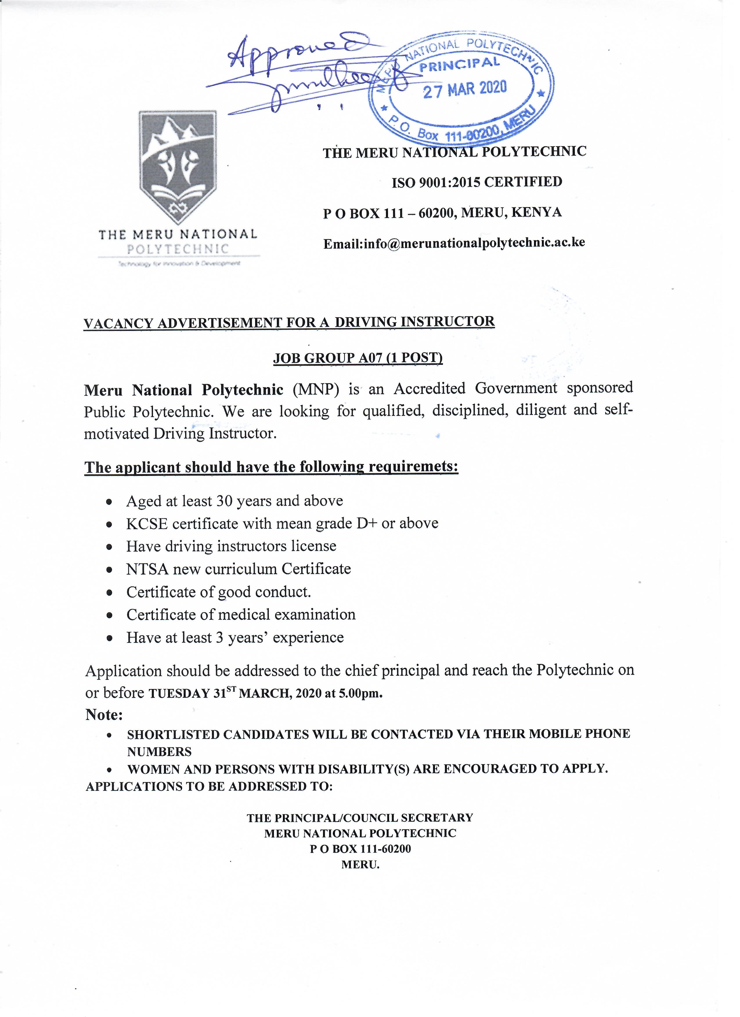 GENERAL PROCUREMENT NOTICE (GPN) - MERU NATIONAL POLYTECHNIC | GENERAL PROCUREMENT NOTICE (GPN) - MERU NATIONAL POLYTECHNIC |
